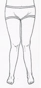 איור שמאלי: מנח של זווית סיבוב מופחתת בעצם הירך, הגורם להפניית כפות הרגליים כלפי חוץ בהליכה (הליכת 'צ'ארלי צ'פלין')